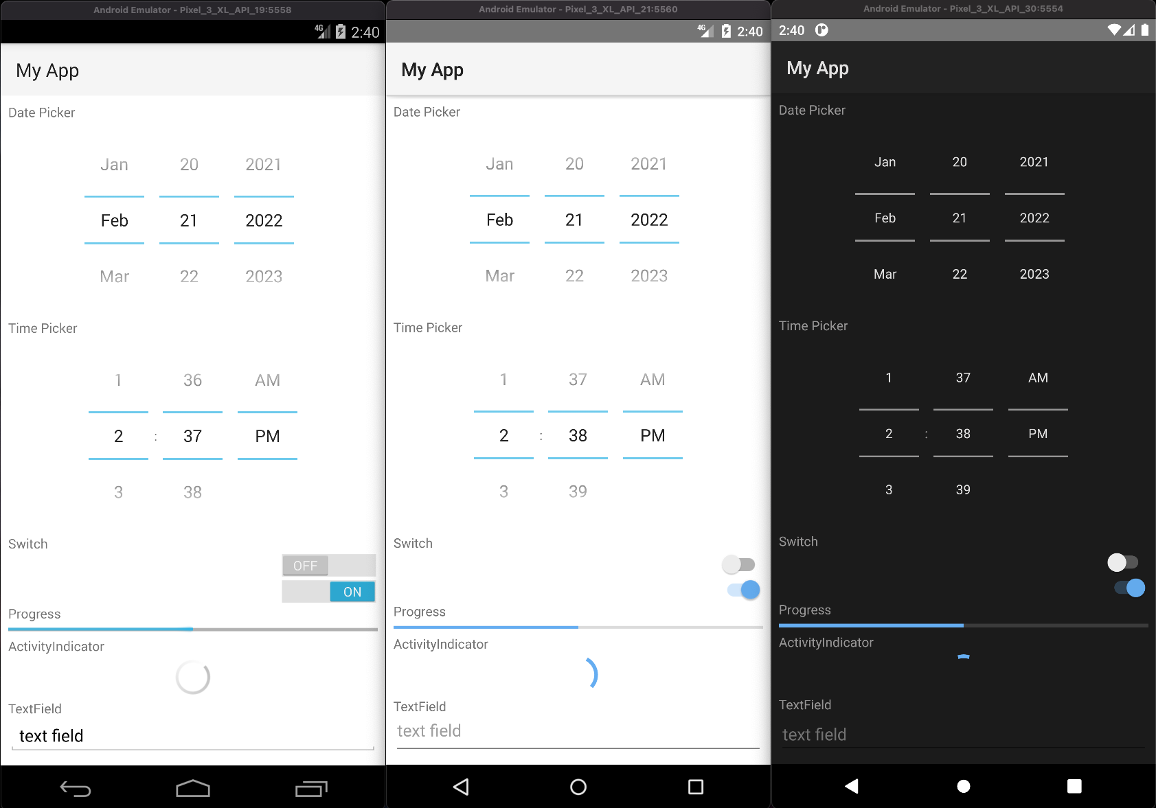 On Android, many aspects of the default styling is controlled through various settings within the App_Resources folder.